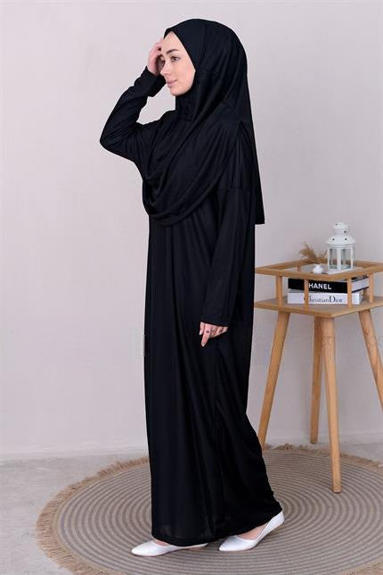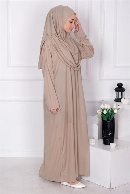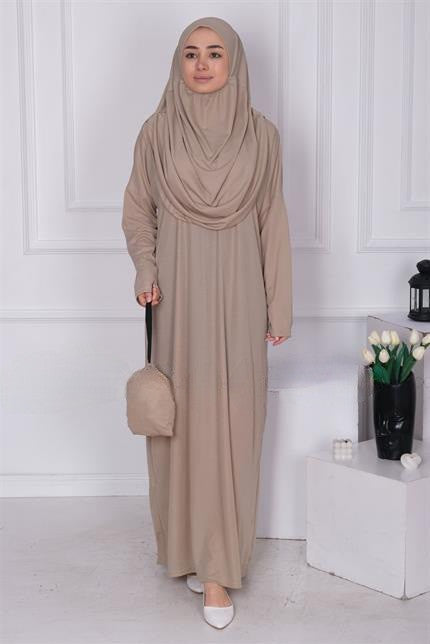 Robe de prière avec hijab intégré . livré dans sa petite sacoche idéal pour emporter .
