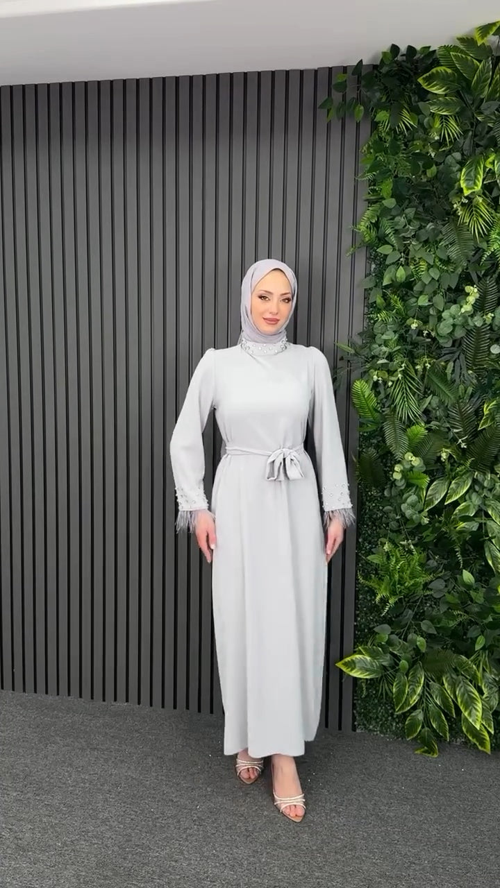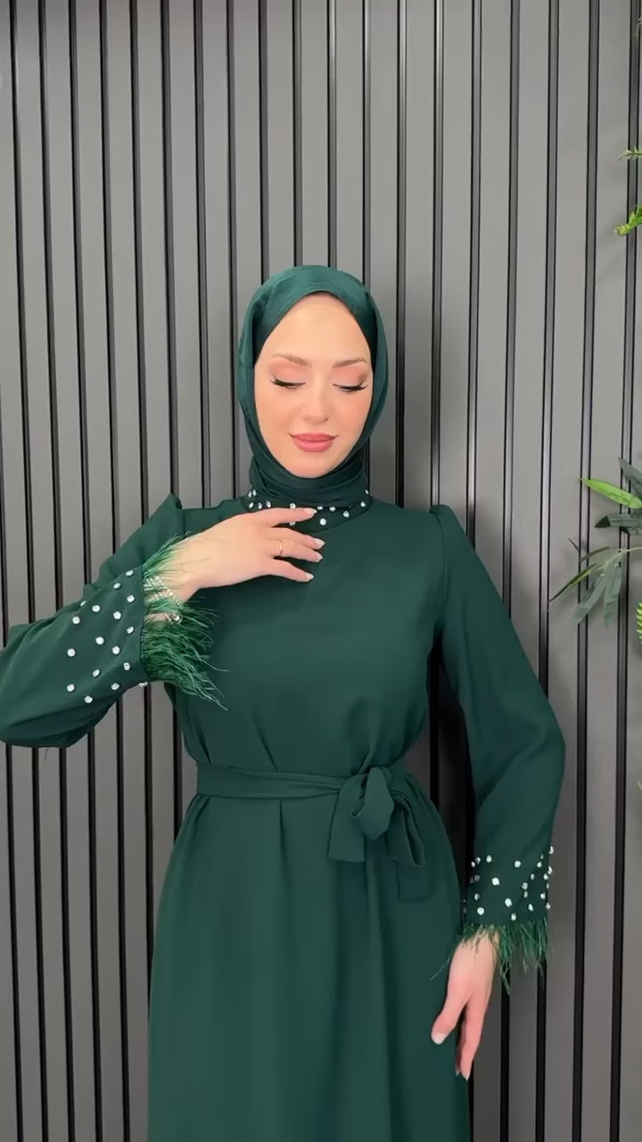 Jolie robe élégante manches évasées , strass cloué sur le col et les manches.