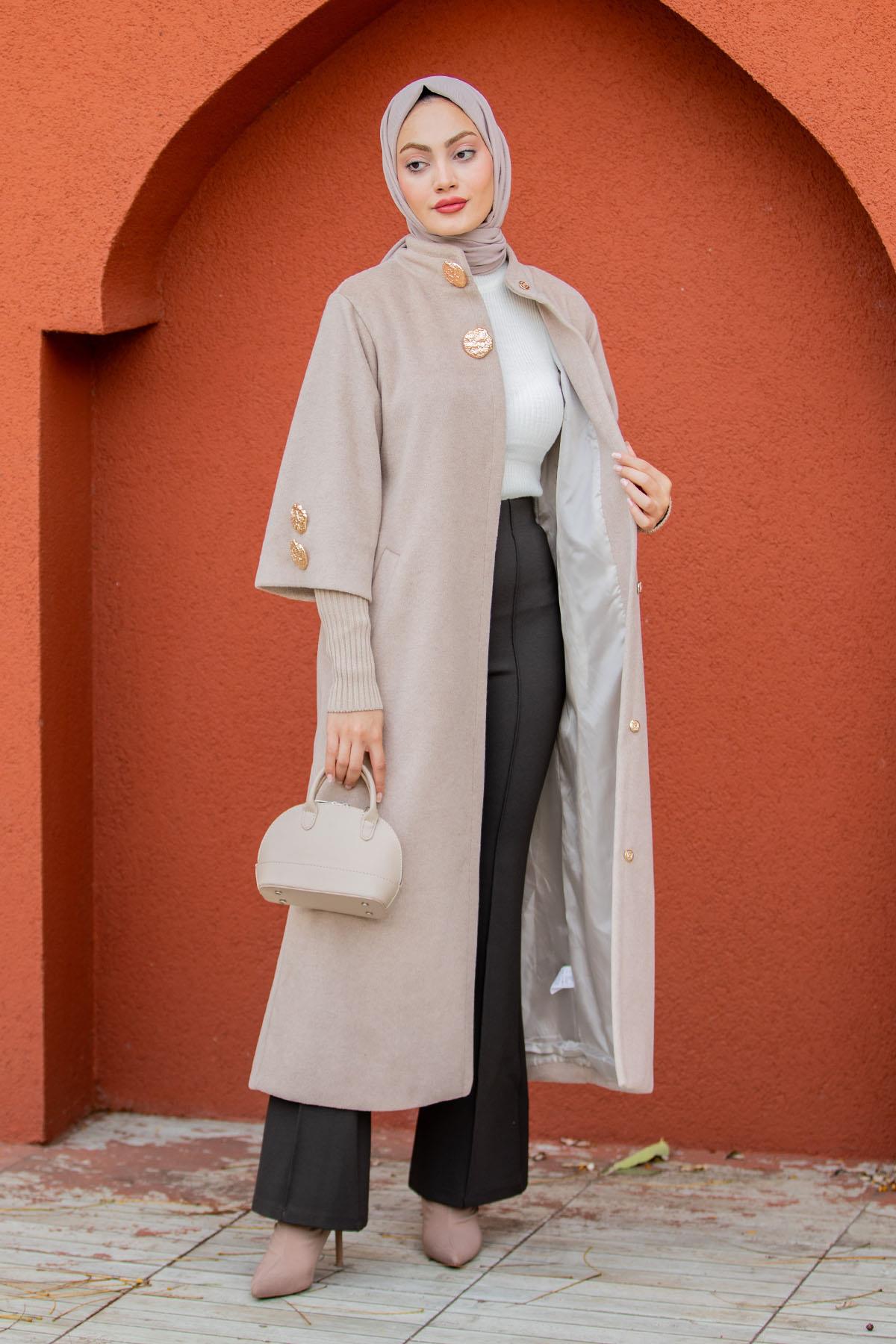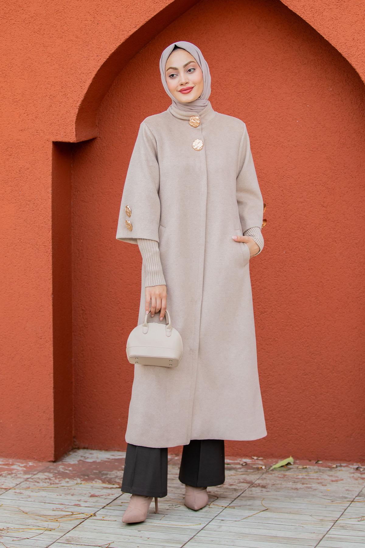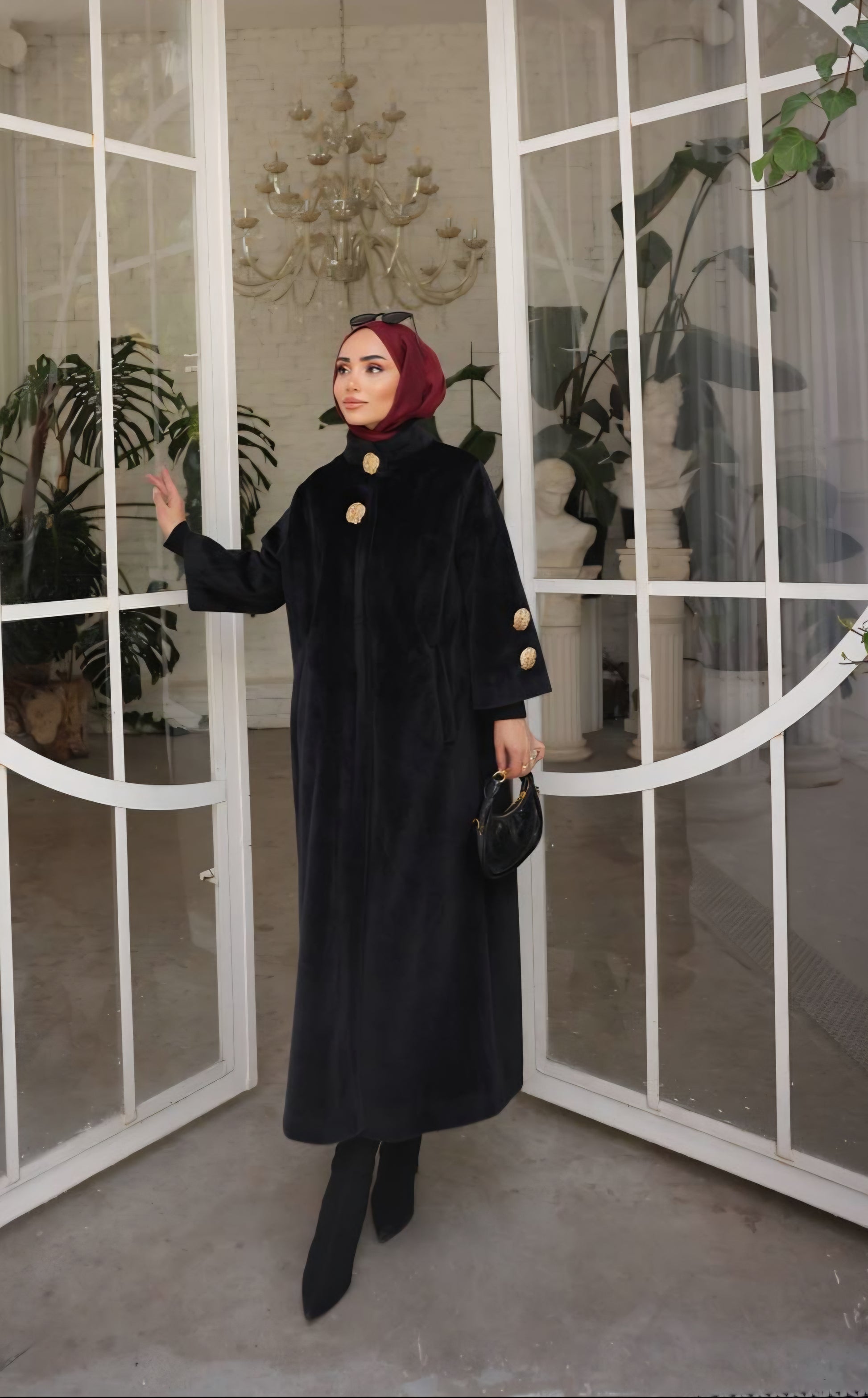 Jolie manteaux long imitation angora , entièrement doublé, fermeture par bouton a pression ,2 poches , boutons décoratifs couleur or .