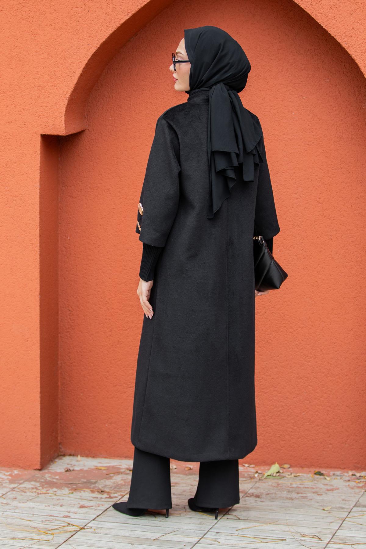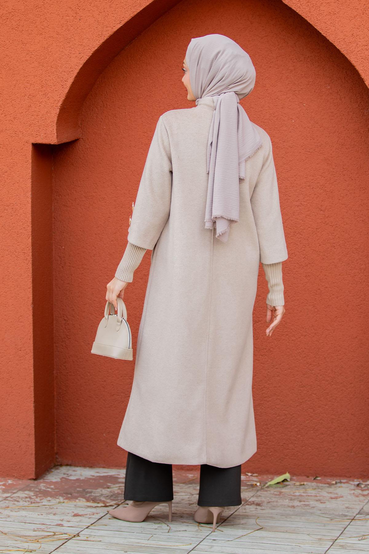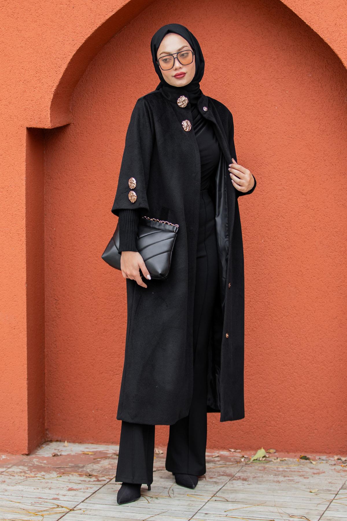 Jolie manteaux long imitation angora , entièrement doublé, fermeture par bouton a pression ,2 poches , boutons décoratifs couleur or .