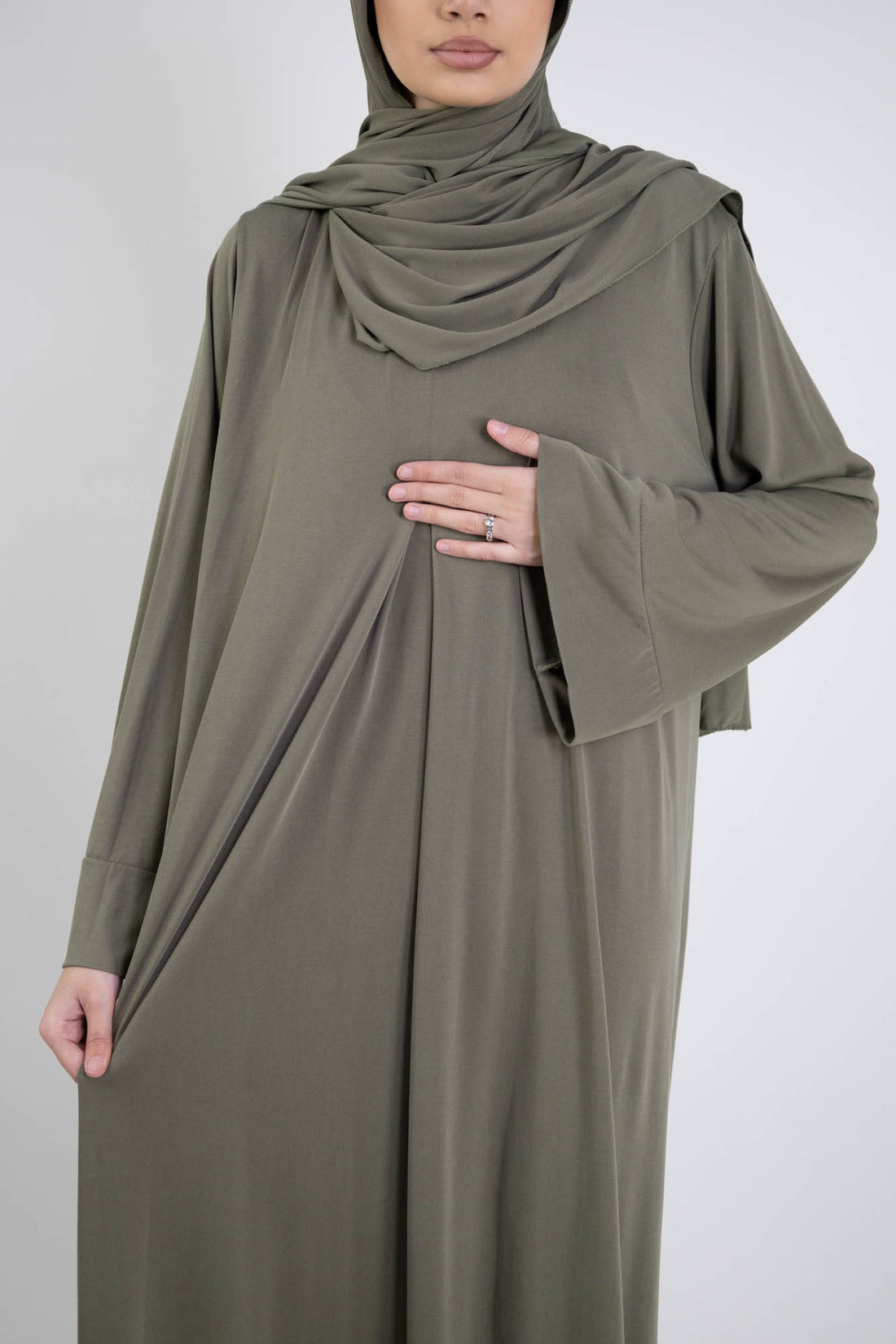 Jolie robe de prière ultra légère et fluide avec hijab intégré cousue à la robe .