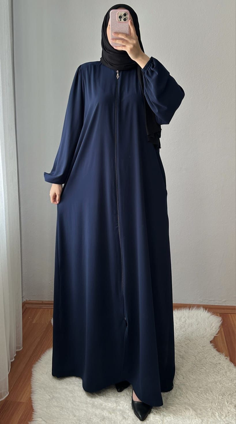 jolie robe à fermeture éclair et poches , manches élastiques .